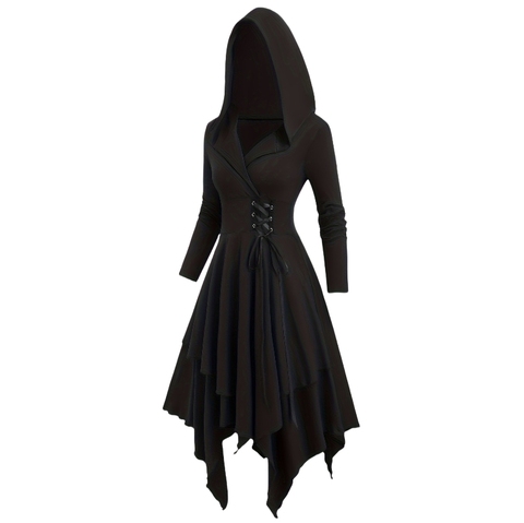 Vestidos de mujer de talla grande gótico Color sólido vendaje manga larga dobladillo asimétrico Midi vestido con capucha personalizable