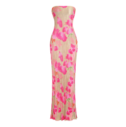 2025 nueva llegada mujer verano Sexy espalda descubierta estampado Floral nudo fruncido tubo largo vestido sin tirantes personalizable