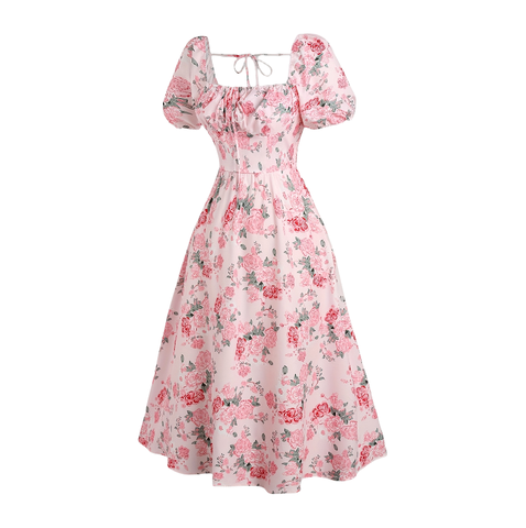 Vestido de mujer Romántico Estampado floral francés Manga corta Vendaje A-Line Midi Vestido personalizable