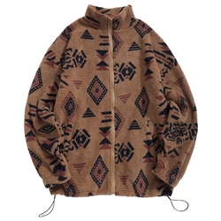 Abrigos de mujer de lana de invierno elegante Jacquard con capucha botón largo peludo cárdigan abrigo personalizable