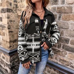 2024 mujeres vestido abrigos de invierno patrón geométrico bolsillos solapas color bloqueo felpa temperamento cálido casual abrigo de piel natural